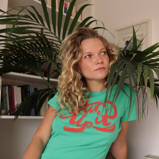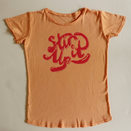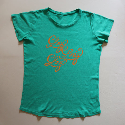 LAY LADY LAY ORANGE ON GREEN TEE SHIRT